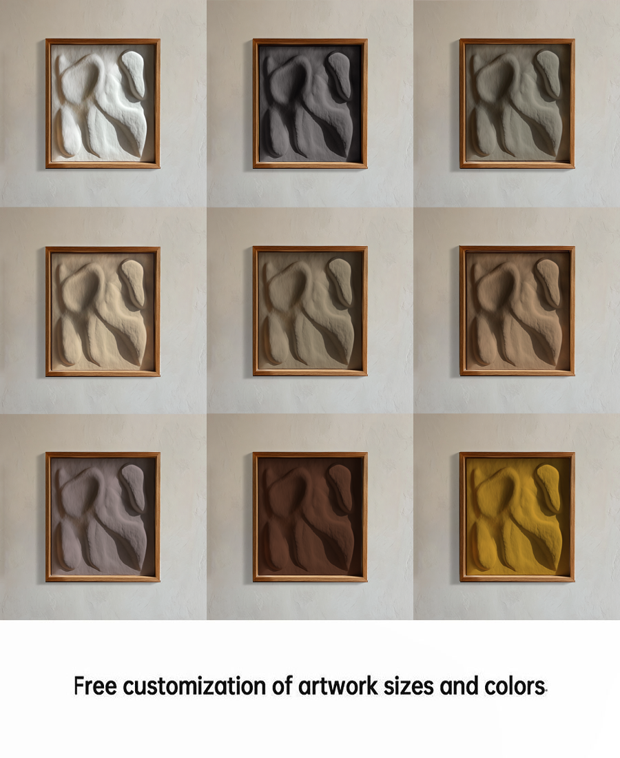 We know every space is unique — that’s why we offer custom sizes and custom colors for every piece. Whether you need a large-format artwork to fill a blank wall or a smaller size to complement existing decor, we tailor the design to your vision. You can also choose from a range of neutral, earthy, or contrasting color palettes to perfectly match your style.