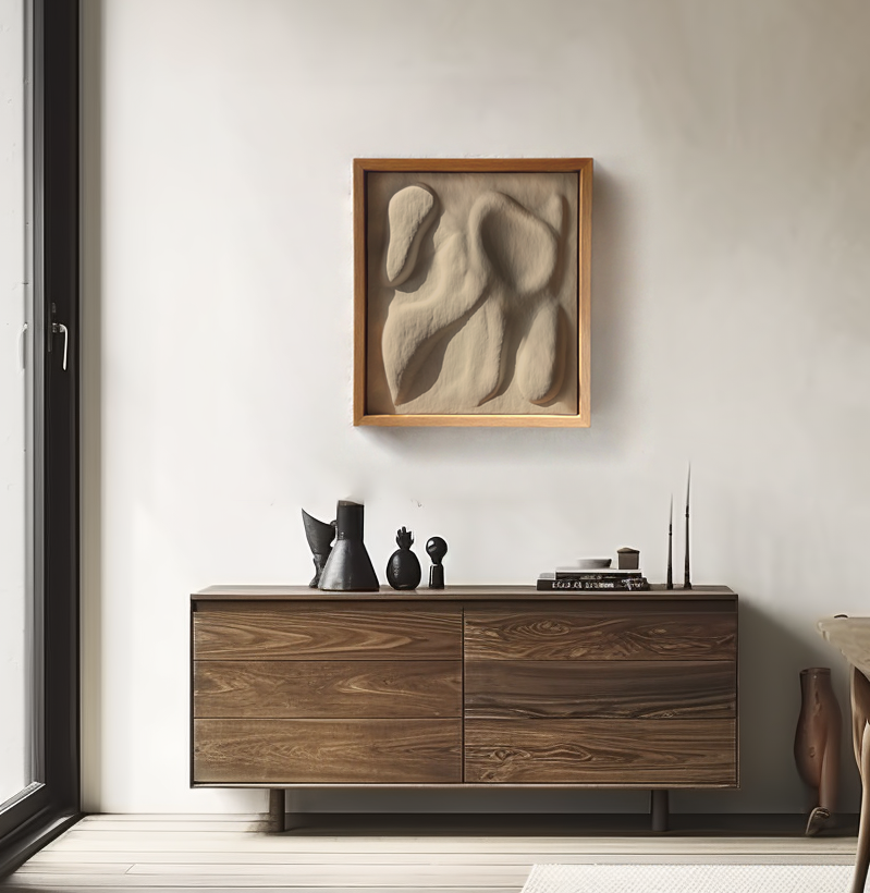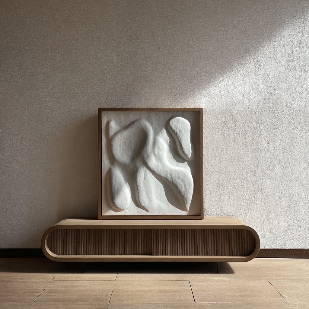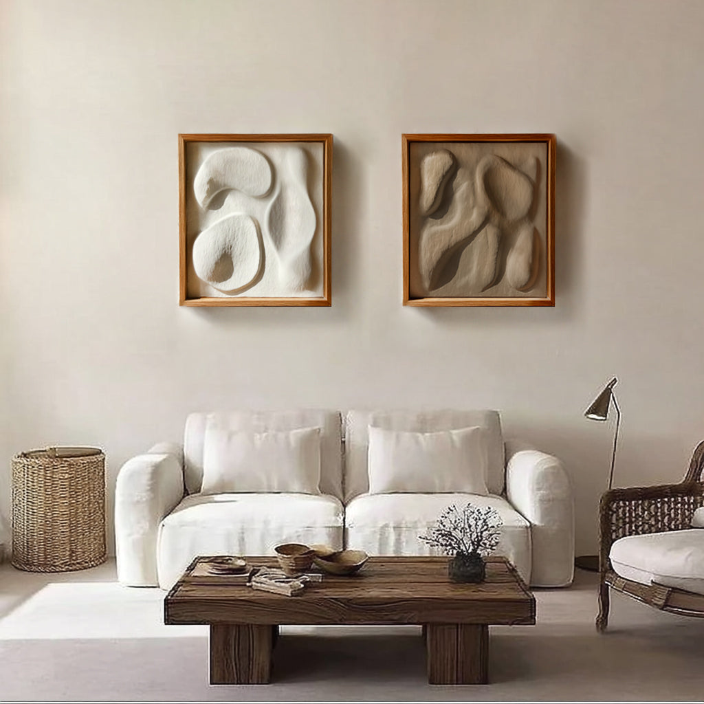 This set of modern relief wall sculptures is made from premium wood, with a smooth tactile surface finished to reveal depth and shadow. Whether your home leans Japandi, Scandinavian, Wabi-Sabi, or organic modern, this neutral tone wall decor brings a refined and grounding presence to any interior.