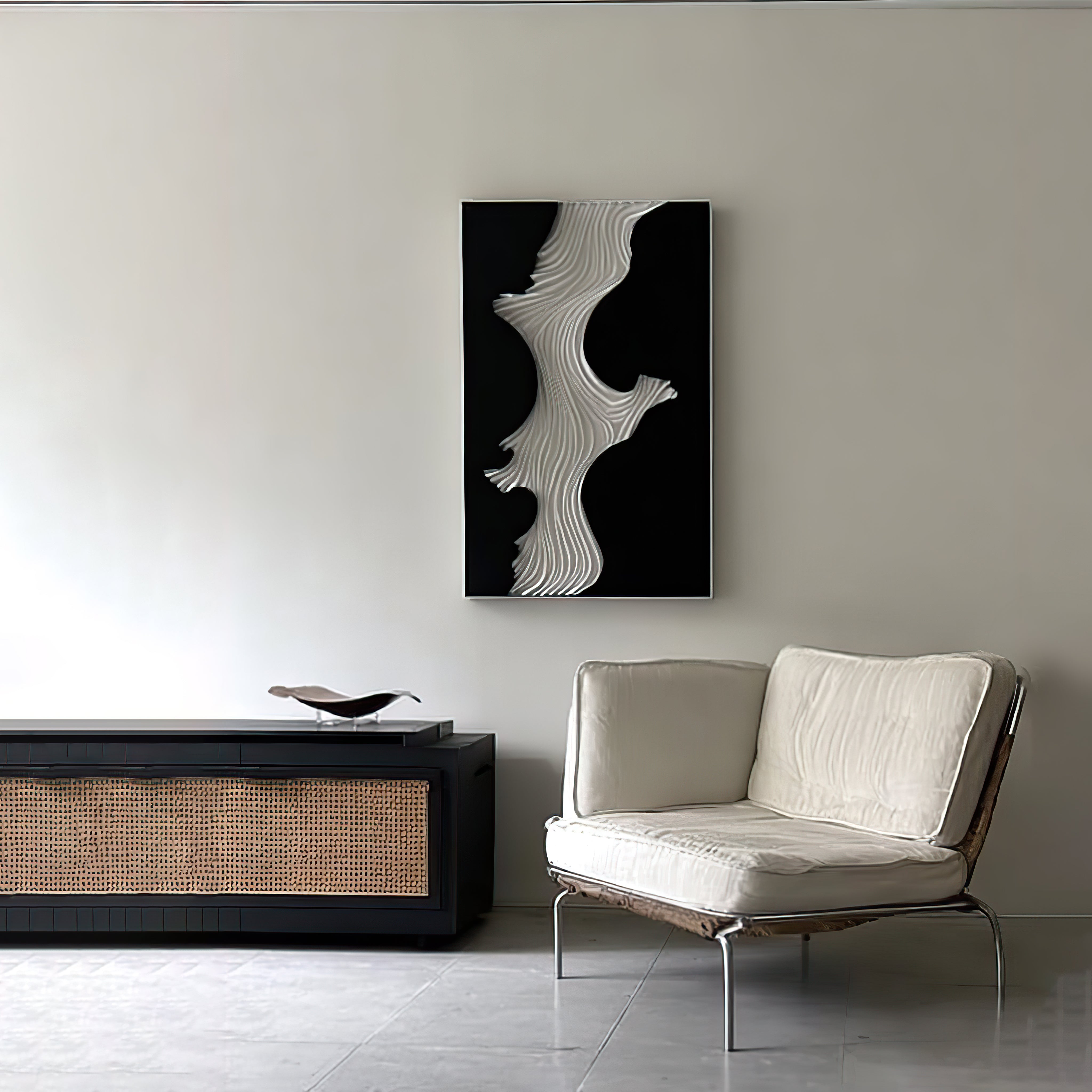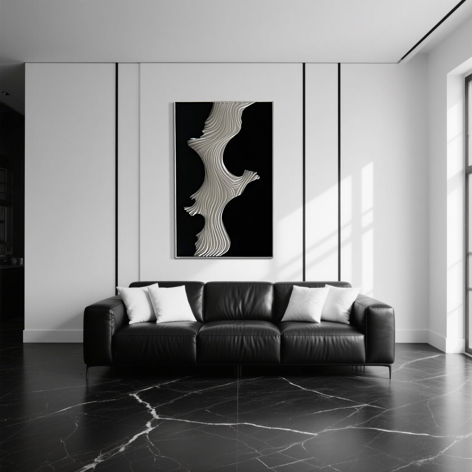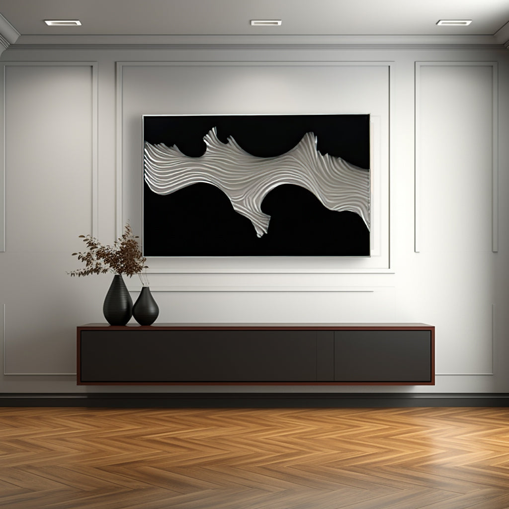Stunning 3D wave wall sculpture with dramatic black & white contrast